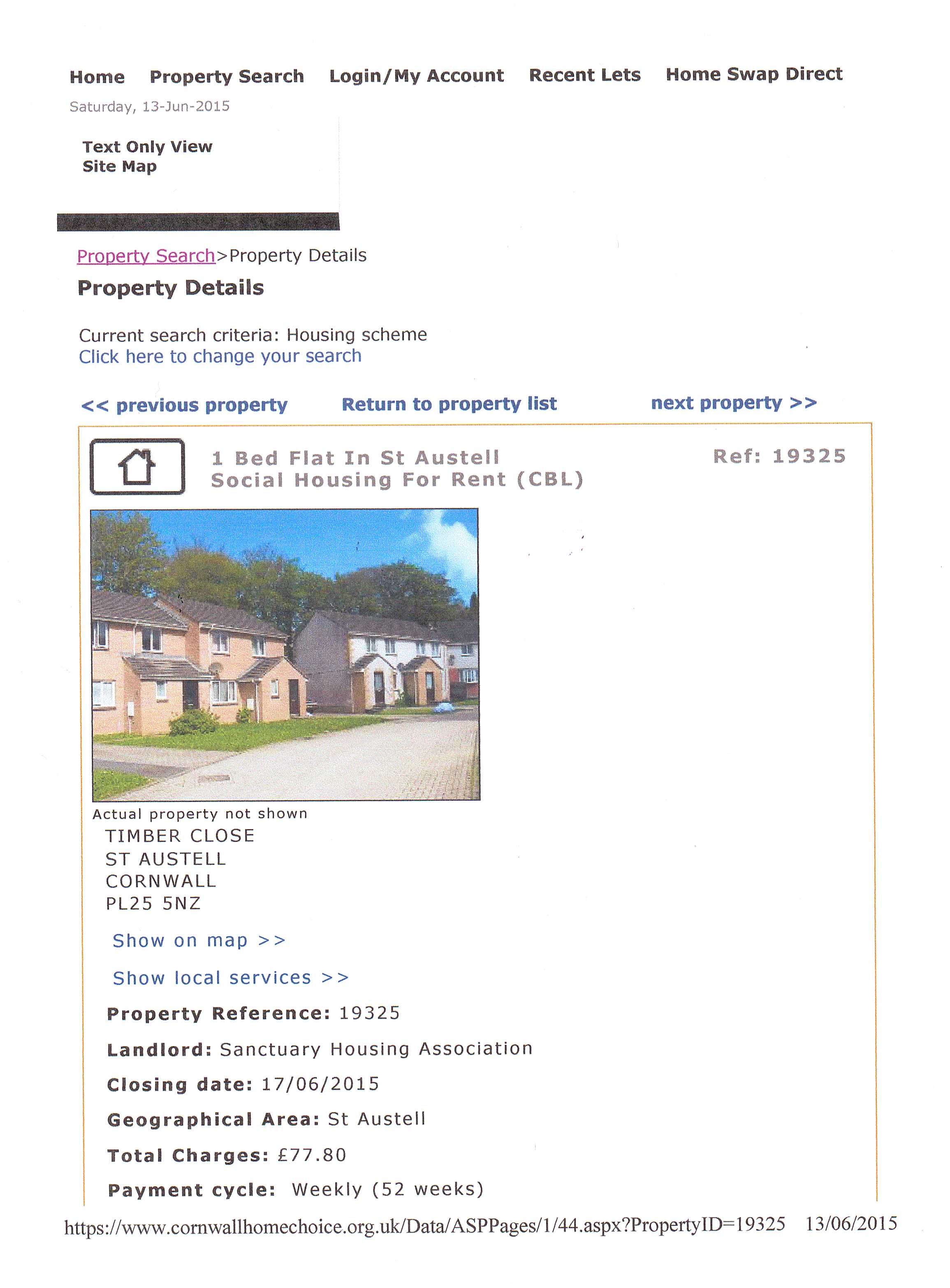 Featured picture this week, above, shows last week’s advertised Homechoice 1 Bed 1st Floor Flat at Timber Close, St Austell, Ref : 19325, owned by Sanctuary Housing. I am using it by way of an up-date. The flat was recently included in a Freedom of Information request to Cornwall Council along with 2 other Timber Close flats advertised this year. Cornwall Council is now obstructing the passage of that FOI request.