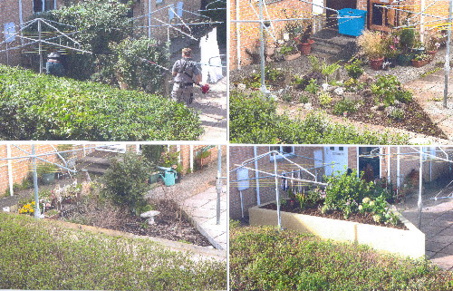 The reason this ‘V’ shaped area of land in the flats communal work area was transformed into a low growing Shrub Bed in 2010 was to stop the 2 rotary driers seen in the pictures being interfered with by foliage. That the residents were unhappy to continue paying a weekly Service Charge for rotary driers which were not ‘fit for purpose’ and voted to stop it ever happening again.